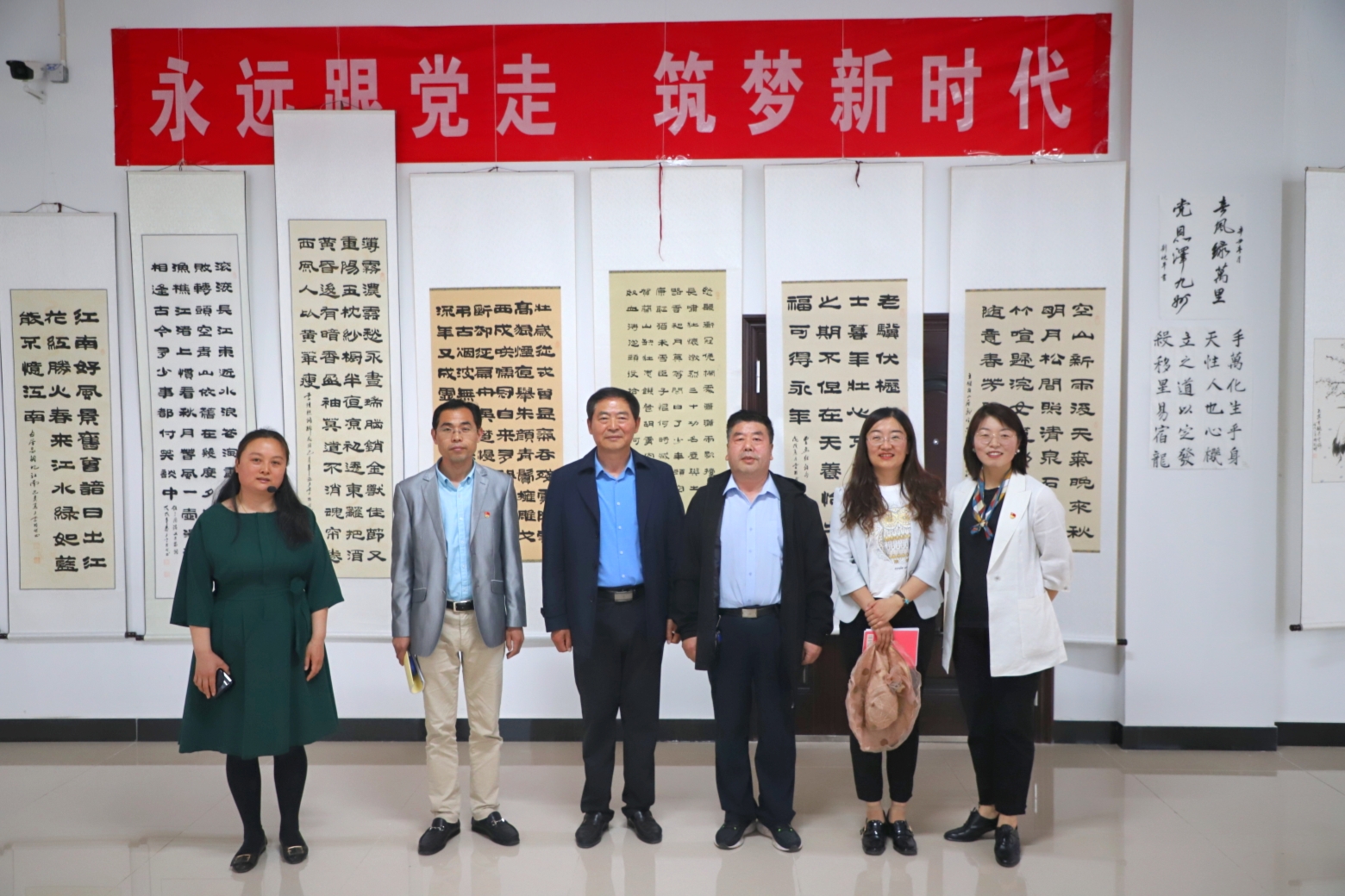 为隆重庆祝中国共产党成立100周年,讴歌党的光辉历程和伟大成就,传承和弘扬优秀传统文化,6月4日,由党委组织统战部、校团委主办,建筑工程学院承办的庆祝建党100周年书画展开展仪式在三教一楼举行。烟台理工学院副校长张仁杰、组织统战部部长张琼玉、校团委书记申海滨及各二级学院党团书记、副书记、各学院负责党建的老师及学生党员代表参加了此次活动。