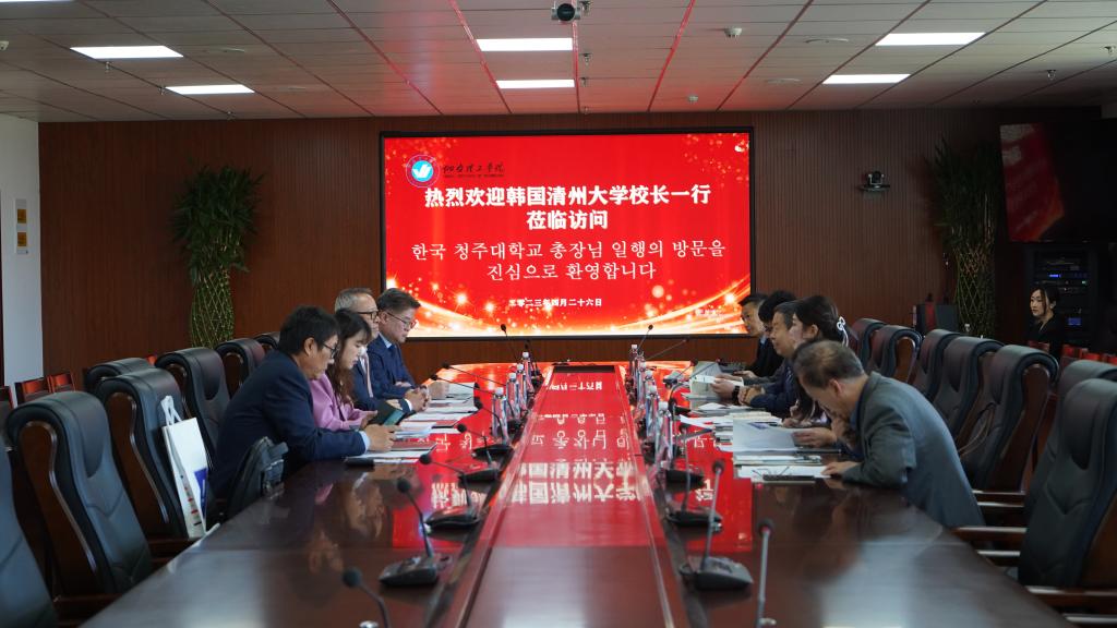 党委书记盛国军对车千洙校长一行的来访表示热烈欢迎,他从专业建设、人才培养、国际交流与合作等方面介绍了我校的情况。他希望双方借此机会进一步加强合作、携手发展。车千洙感谢我校细致周到的接待,简要介绍了清州大学的办学历史、专业设置、办学特色等情况。