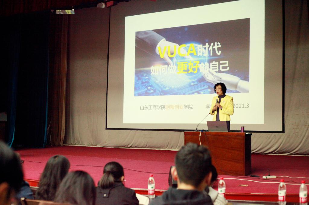 为应对世界的多变性、复杂性,帮助会计学子增强应变能力,引导会计学子了解创新创业知识、培养创新创业思维、提高创新创业能力,2021年3月24日,会计系于多功能厅召开以“VUCA时代如何做更好的自己”为主题的创新创业专题讲座。此次讲座由山东工商学院李冬梅老师主讲,烟台理工学院副院长张仁杰、会计系系主任孙桂娟、会计系党总支副书记温少斐、会计系全体教职工出席本次讲座。